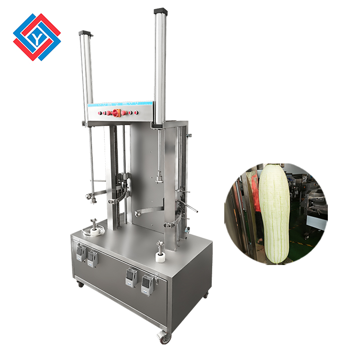 本机适用于木瓜、哈密瓜、西瓜等瓜果削皮,削皮厚薄可调,方便。刀组上下自动循环削切效率高,去皮率达到95%以上。削皮刀架设计,可使瓜皮定向排出,方便收集清理。机器拆洗方便,使用时操作简单,卫生,适合餐饮行业,饭堂,食品加工厂使用。